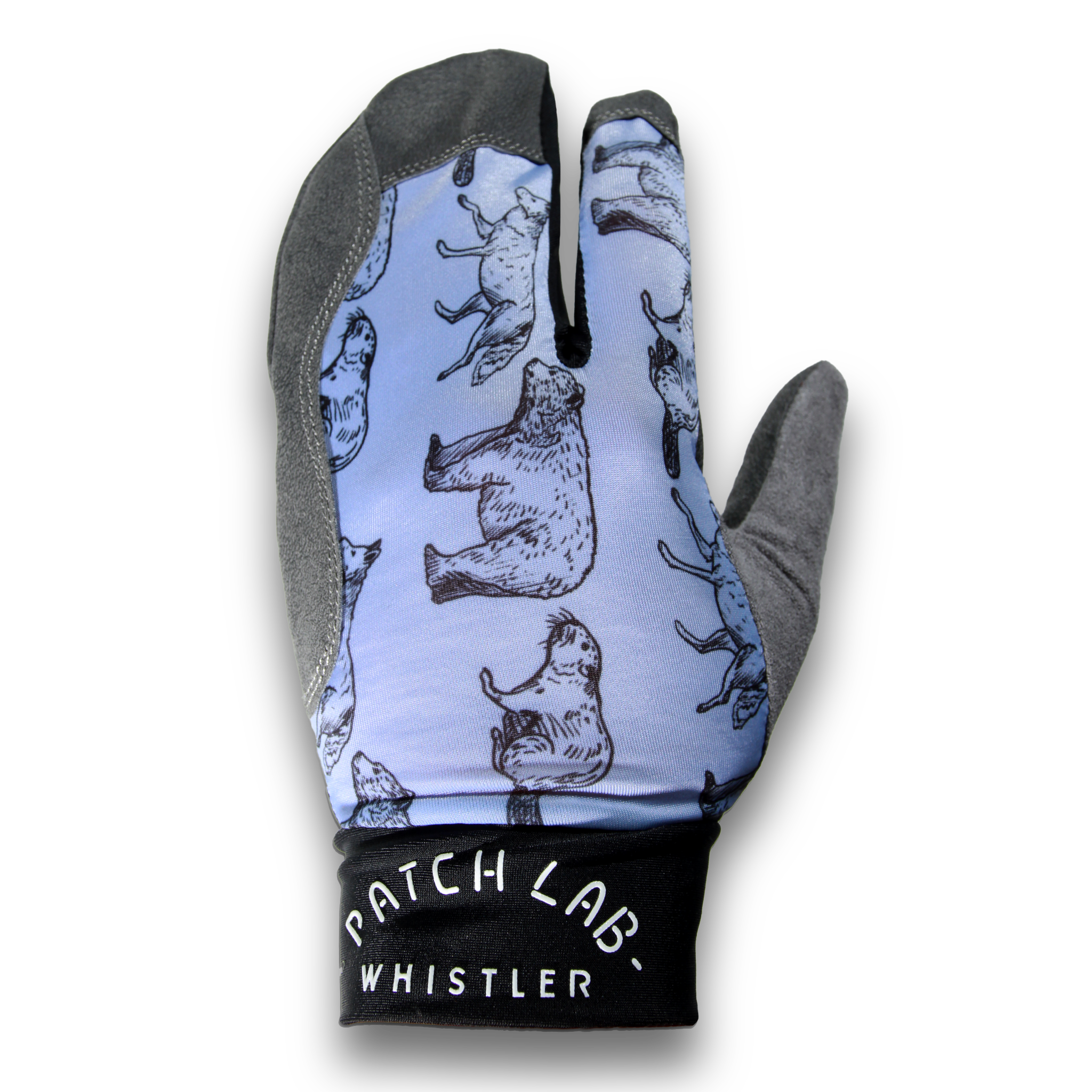 Our custom printed fabric features original line drawings of iconic animals around Whistler, including the wandering coyote, beloved black bear and adorable beaver.